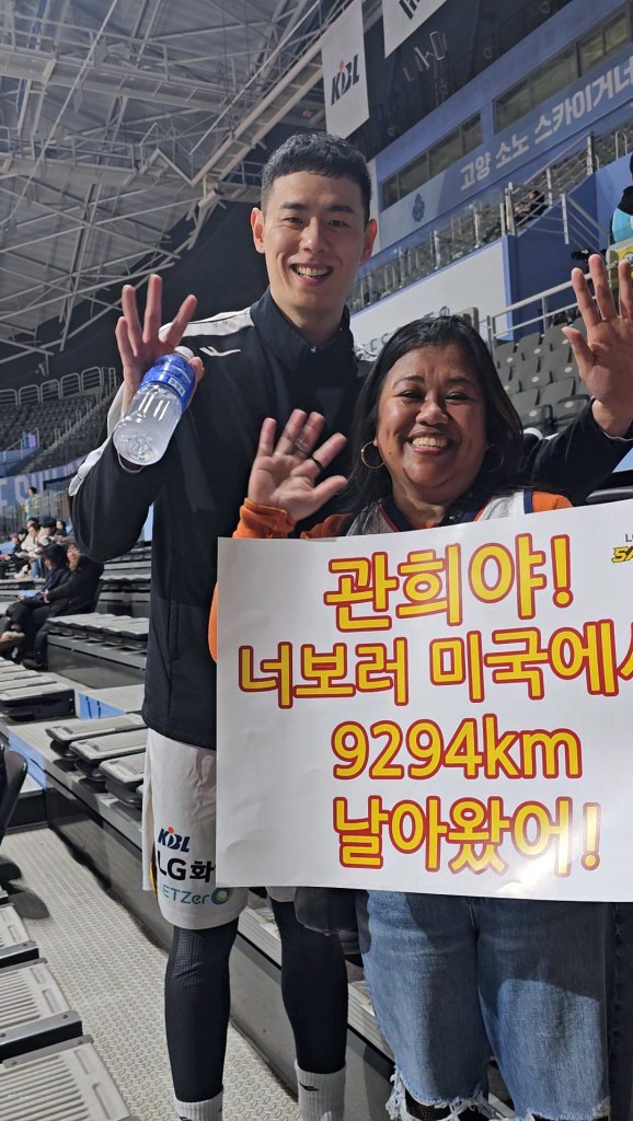 관희야! 너보러 미국에서 9294km 날아왔어 was what was written on the poster that I excitedly held in my hands as I arrived Goyang Gymnasium 90 minutes prior to tip off. When translated in English, it states, “I traveled 9,294km from the USA to see Lee Gwanhee.”
