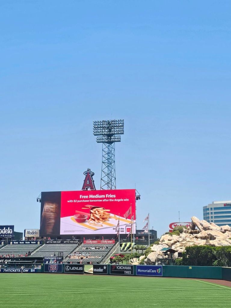 This was my first ballpark outside the Oakland Coliseum. (Technically, I have been to Oracle, but I went there to do post-game interviews for a local TV station, not as a fan.) Although I wasn’t too impressed with the actual stadium, I loved the people. (Well, except for one of the ushers who I didn’t feel the best vibe from.) I wasn’t a big fan of the “Radiator Springs” rock formation in the center outfield. It just looked out of place, and I don’t doubt it was Disney inspired.