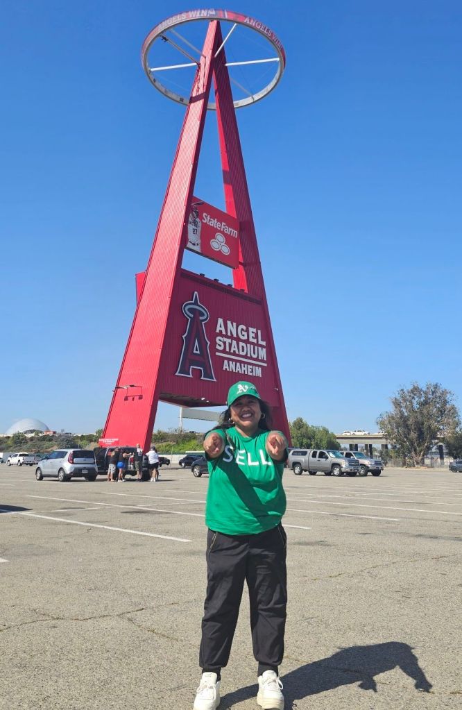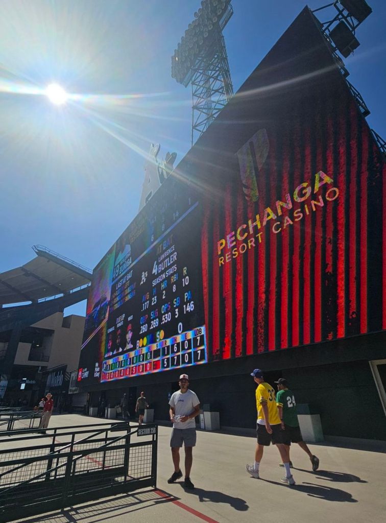 My favorite part of the stadium is actually The Big A, the 230-foot(70m) metal sign standing in the Angels parking lot. I read it’s been there since 1966. I love old vintage things.